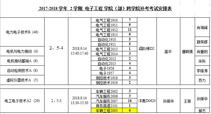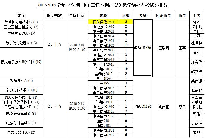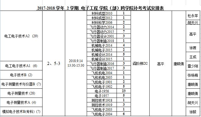 电子工程学院2017-2018-2跨学院补考安排