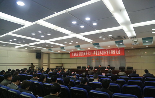 3月25日下午,我校领导班子和领导干部2015年度目标责任考核暨综合研判工作会议在沣惠校区图书馆报告厅举行。省委高教工委委员、统战部长、省属高校领导班子和领导干部2014年度考核暨综合研判第四组组长李智军、省委高教工委机关党委专职副书记梁爱芳、教育厅发展规划处副处长王鹏、省委组织部宣教干部处干部赵伟和张骥、周波同志一行,来校组织实施考核研判工作。学校党委委员、纪委委员、学术委员会委员、工会委员,正高职称专业技术人员、正处级以上领导干部,市级以上人大代表、政协委员,民主党派主要负责人,近三年退休的校领导70余人参加会议。会议由党委书记邓志辉同志主持。