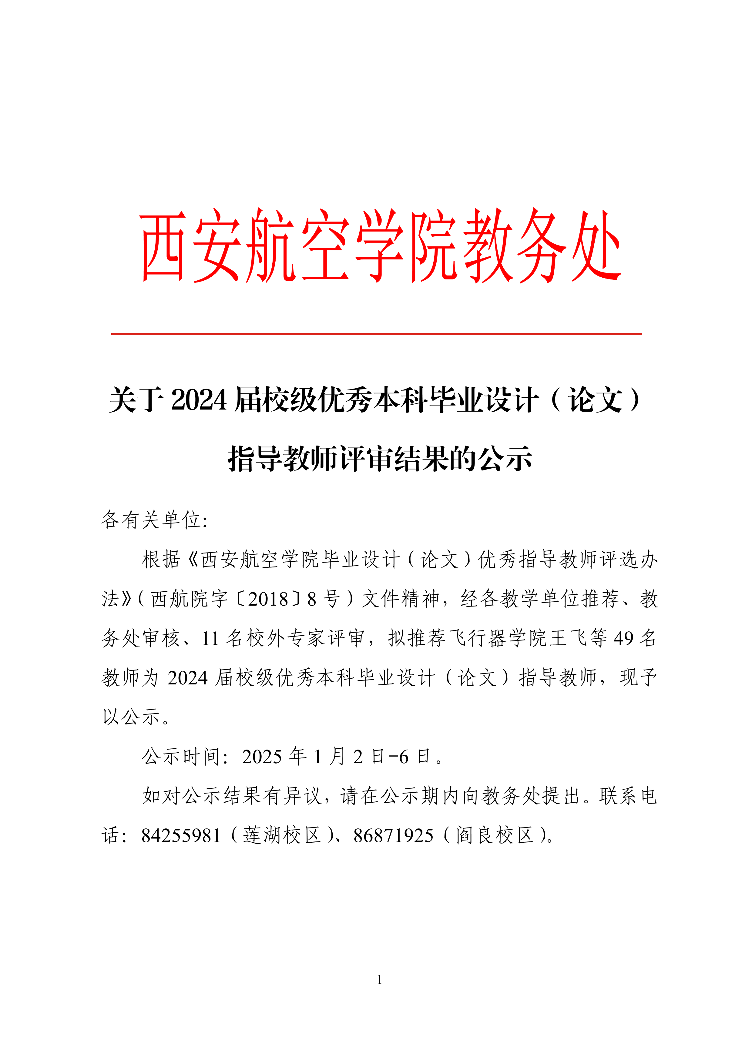 关于2024届校级优秀本科毕业设计(论文)指导教师评审结果的公示