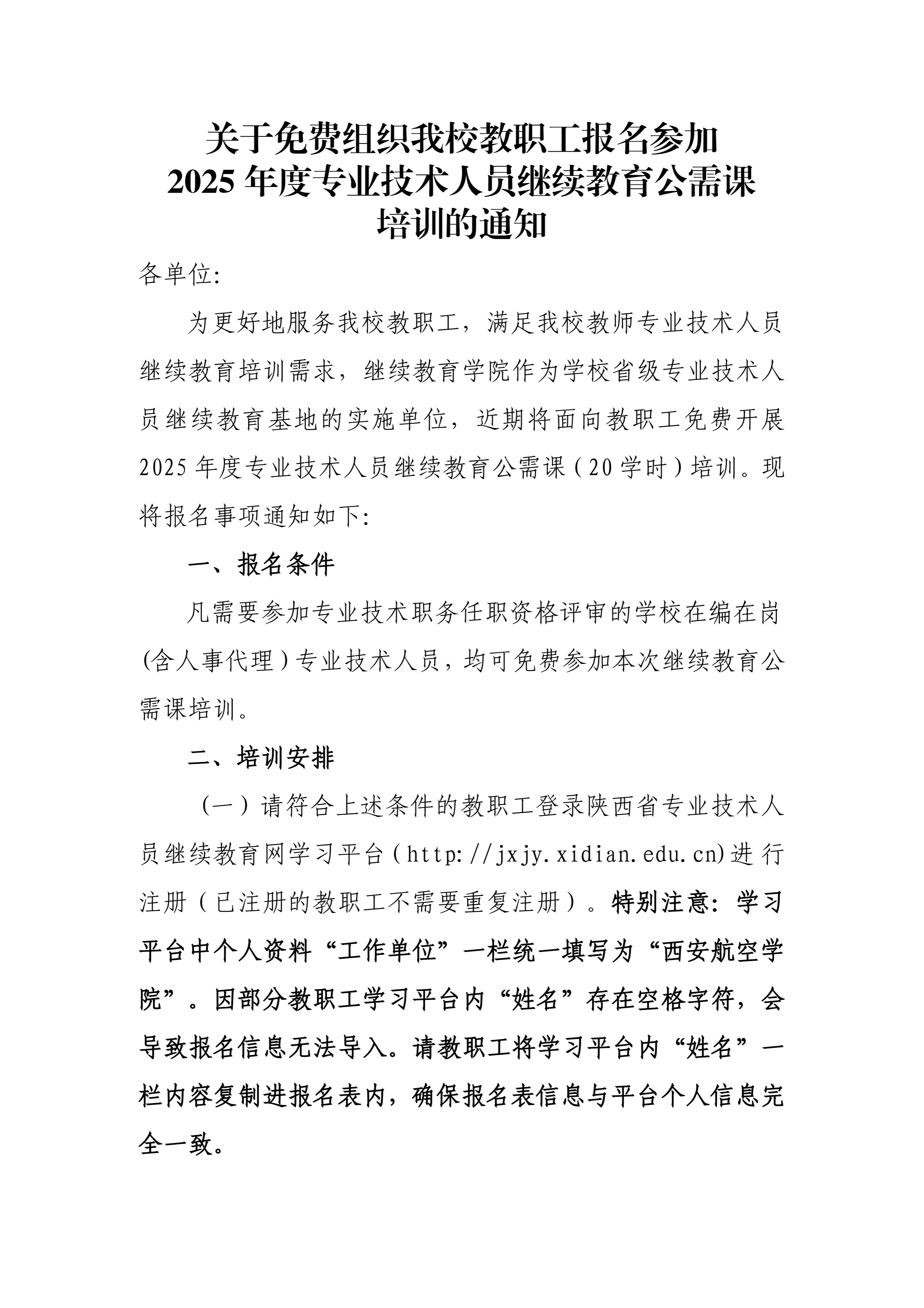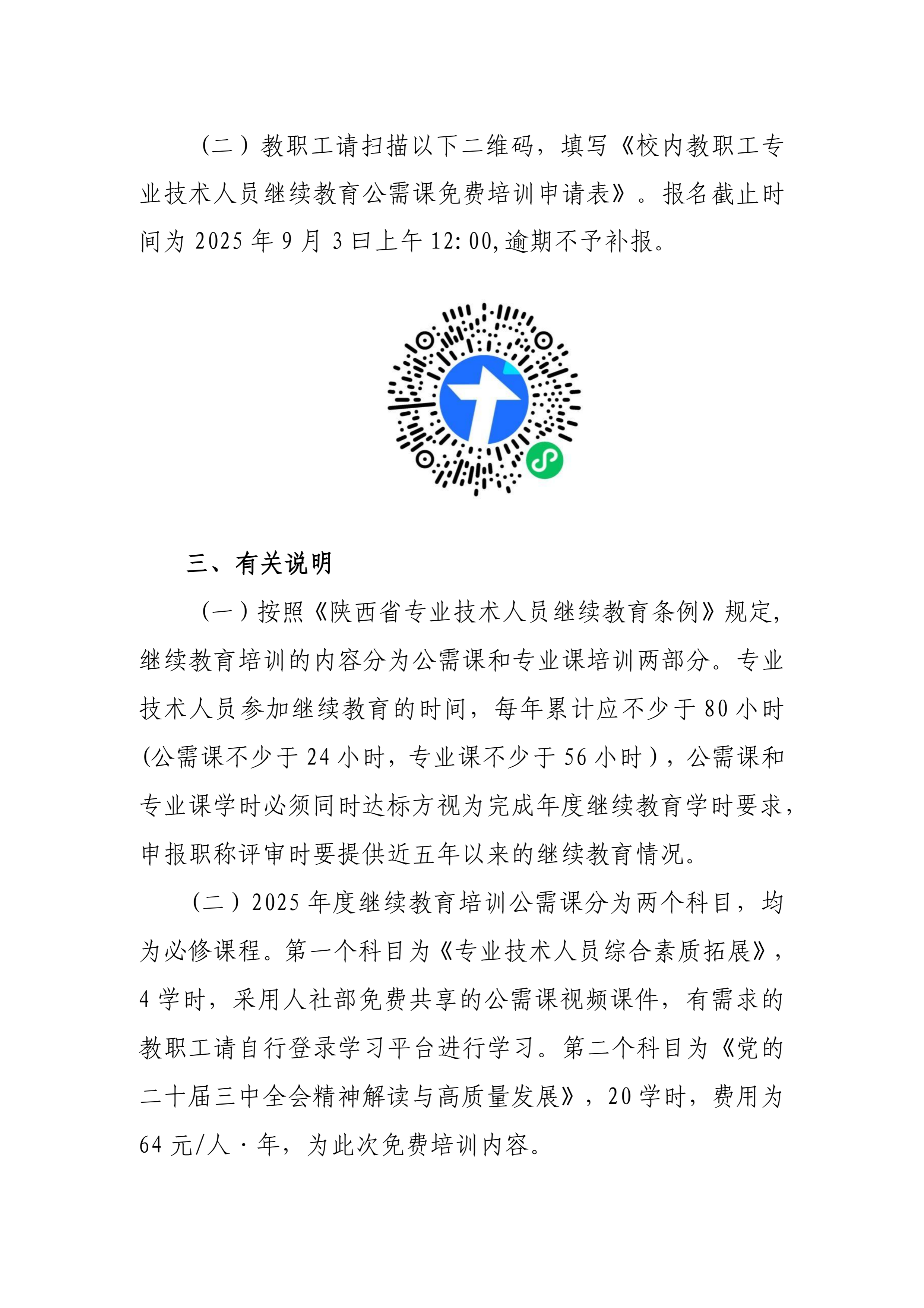 关于免费组织我校教职工报名参加2025年度专业技术人员继续教育公需课培训的通知