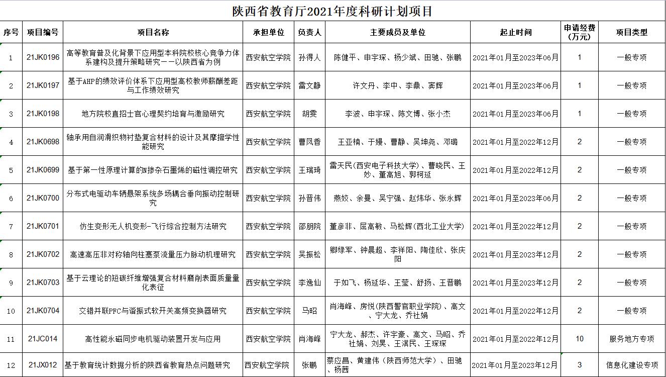根据《陕西省教育厅科研计划项目管理办法》,经学校遴选推荐,省教育厅组织审核、专家评审、厅务会审定和公示,最终确立了陕西省教育厅2021年度科研计划。现将有关事项说明如下: