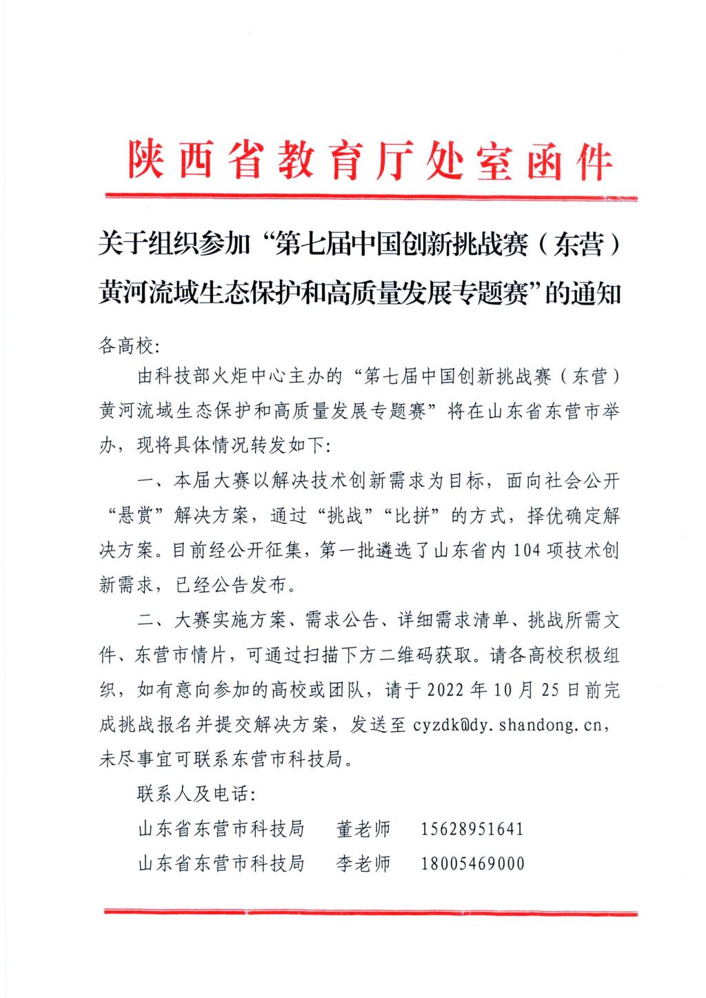 关于组织参加“第七届中国创新挑战赛(东营)黄河流域生态保护和高质量发展专题赛”的通知