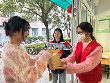 岁末寒意渐浓,考研的征程也进入了最关键的冲刺阶段。为鼓舞正奔赴梦想的2026届考研学子,传递学院的温暖陪伴与深切祝福,12月17日下午,超豪学区先锋党支部发起“暖冬研途·逐梦同行”暖心活动,学院各学生支部党员、志愿者共同参与。 毕业生公寓楼下,身着红马甲的志愿者们早已就位,将一份份寓意深远的礼物细心分装、摆放得井井有条。贺卡藏着手写的祝愿,是“落笔有回响”的美好期许;分装袋收纳着点滴心意,寓意整理思绪、从容应考;金黄的橙子,谐音“成”功,寄托着心想事成、硕果累累的美好祝愿;小巧的多肉盆栽,象征着考研路上的耐力与执着;简约的台历,静静伫立,提醒着时光有序,步履不停。、活动在温馨而简洁的仪式中拉开序幕。同学们陆续前来,从志愿者手中接过这份暖意融融的礼物袋,眼中闪烁的是惊喜,亦是感动。方寸贺卡,笔墨传情,既是初心也是星光;一袋温暖,收纳从容,既是整理也是陪伴;青青多肉,寂静生长,既是坚持也是希望;一页台历,时光可见,既是规划也是陪伴;橙香满怀,心想事成,既是祝福也是硕果。愿这份心意,凝聚成一股“你不是一个人在战斗”的坚实力量,让紧张的冲刺阶段,多一份从容与温度。初审:谢巍 复审:刘伟金 终审:叶如芳